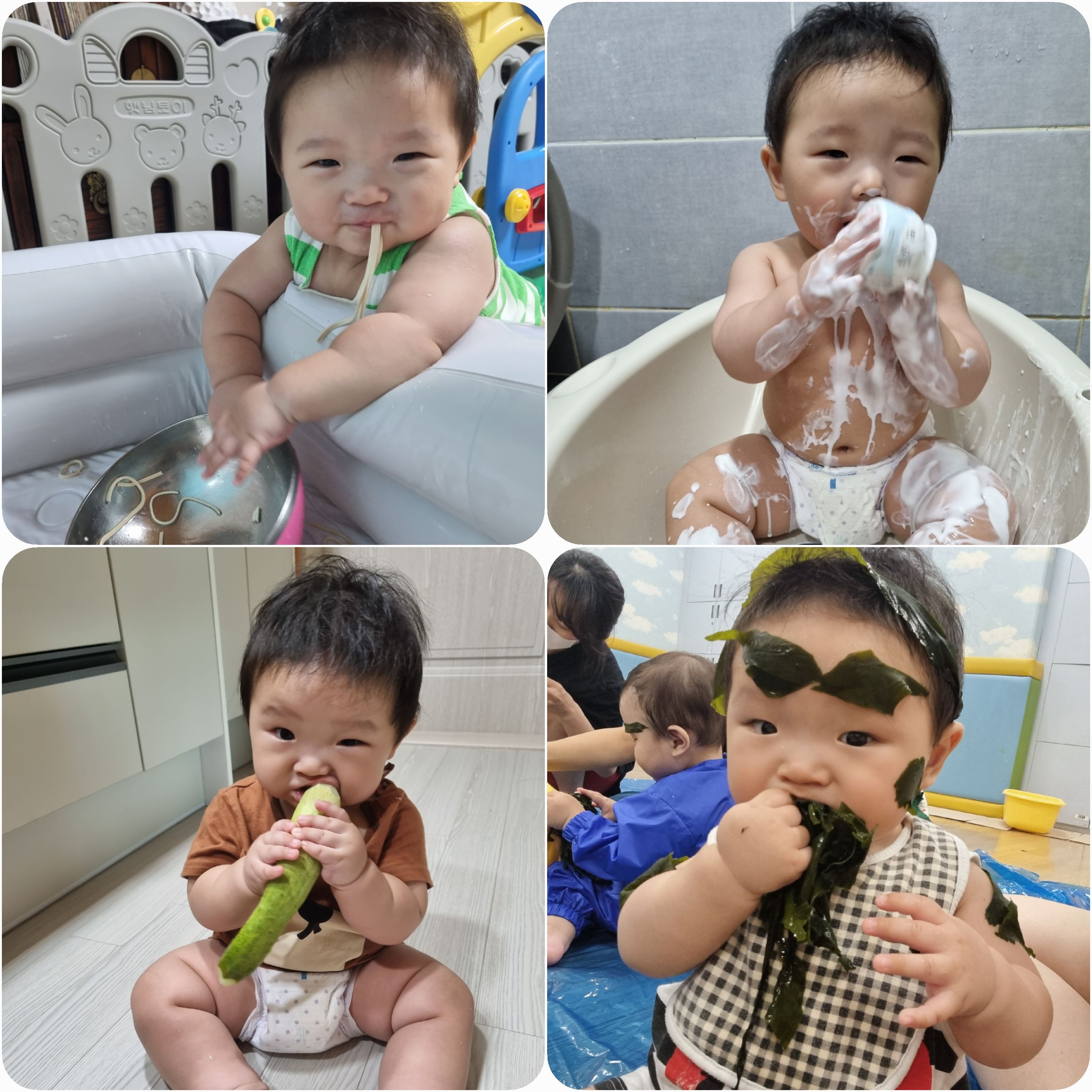 촉감 놀이를 통해 아기에게 다양한 과일과 채소를 소개하는 것은 아기의 오감각을 자극하고 어릴 때부터 건강한 식습관을 기를 수 있는 좋은 방법입니다. 바나나와 아보카도 같은 부드러운 과일, 오이와 당근 같은 아삭한 야채, 수박과 딸기 같은 즙이 많은 과일은 아기가 탐색할 수 있는 다양한 질감과 맛을 제공합니다. 부모는 원재료 그대로 또는 얇게 썬 과일과 야채로 아기가 스스로 재료를 만지고, 짓누르고, 맛볼 수 있도록 할 수 있습니다.